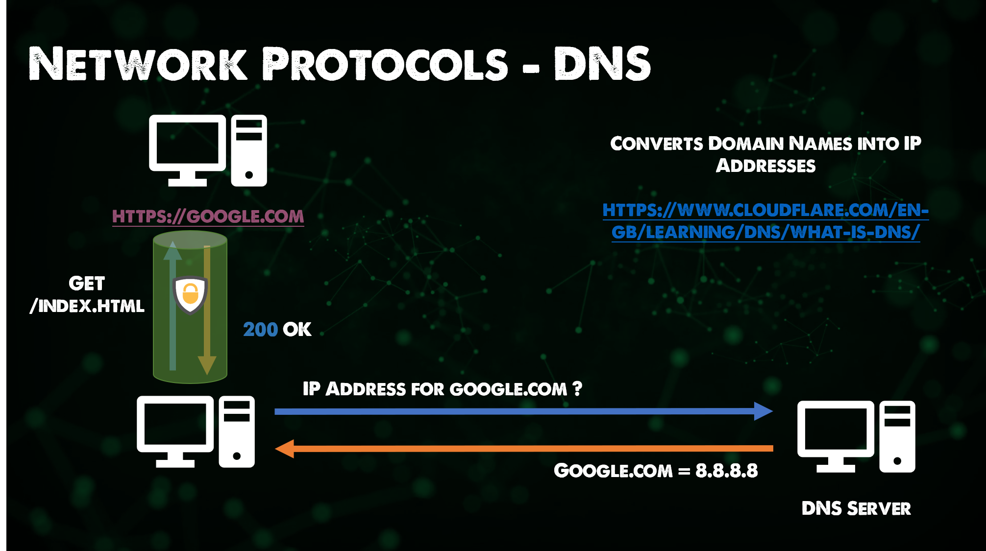 然後我們有 DNS,正如我們剛剛涵蓋的,幫助我們將複雜的公共 IP 位址轉換為更合適和可記住的網域名稱。也許我們可以將其視為巨大的分揀辦公室,以確保我們收到正確的郵件。