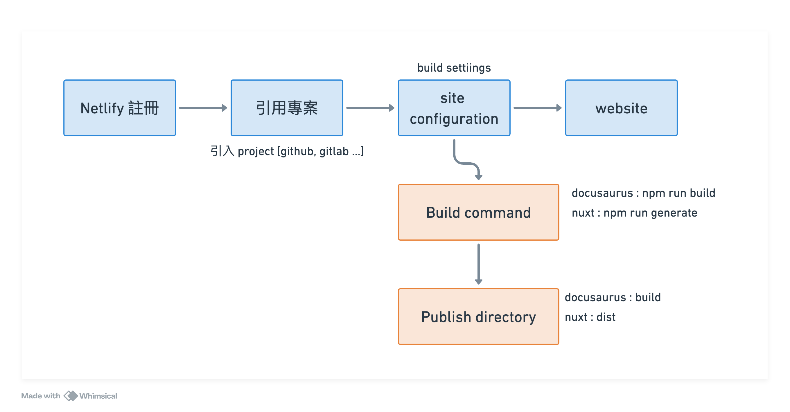透過下面的流程,可以建立 docusarus 和 nuxt3 的專案