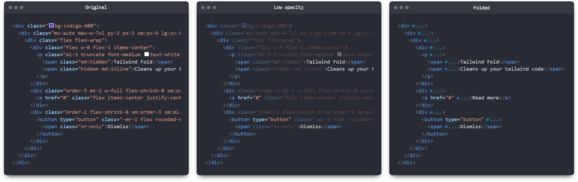 tailwind 的主缺就是 classname 超長,沒有辦法好好的閱讀,但這個小套件能讓你的 class 轉成一個 fold 的樣子,想看的時候在把它打開